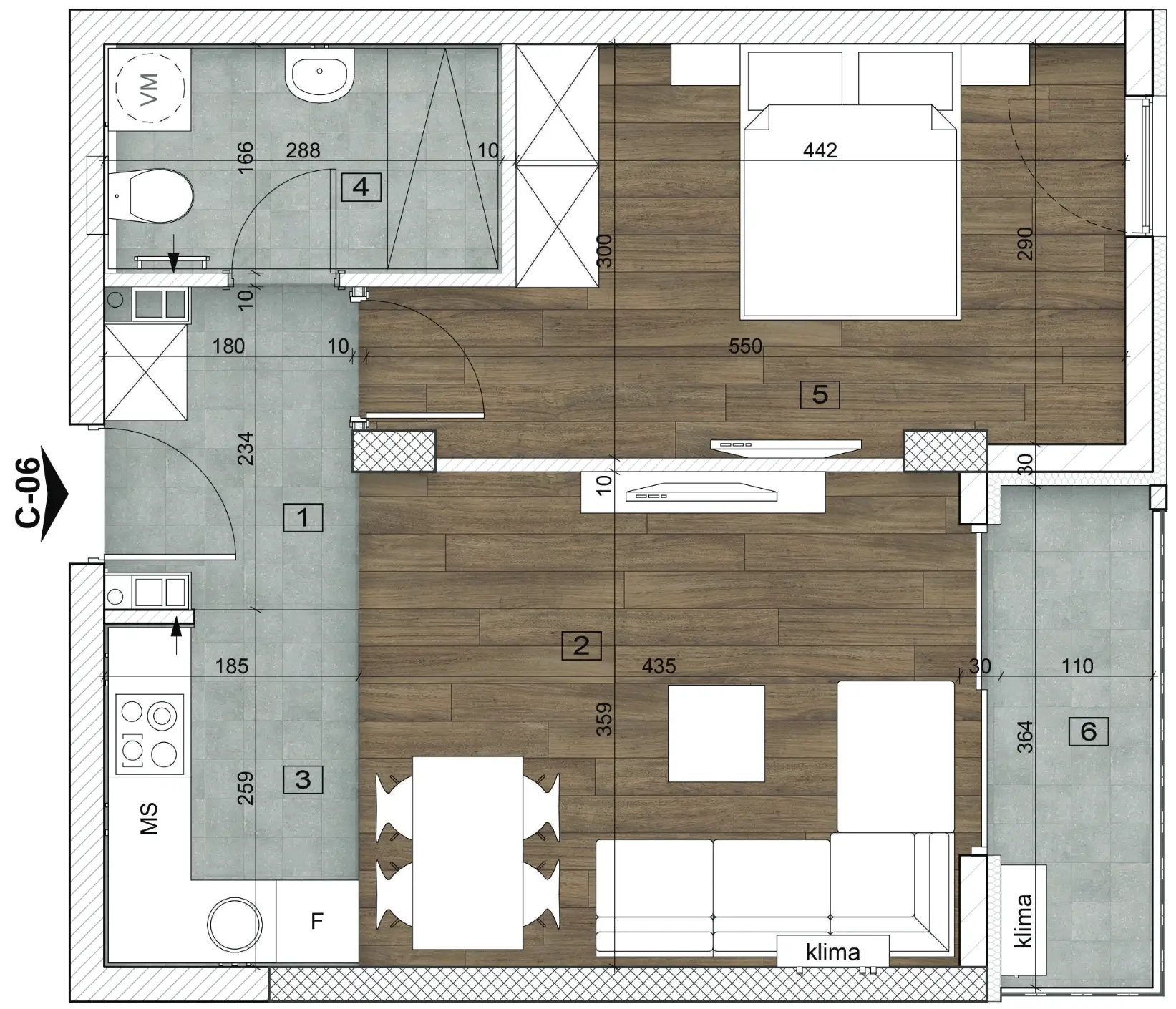Lamela C | Sprat VI | Stan 36 | 45.91m2